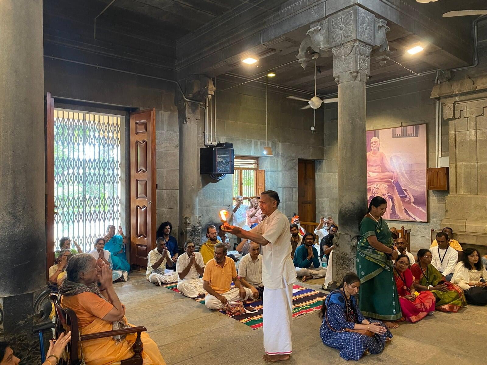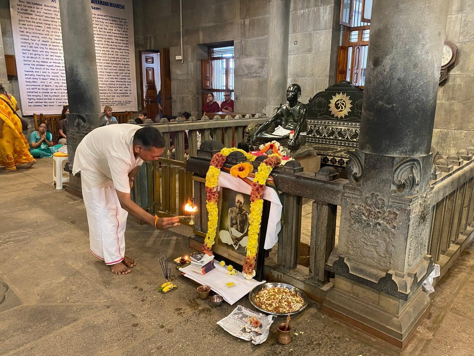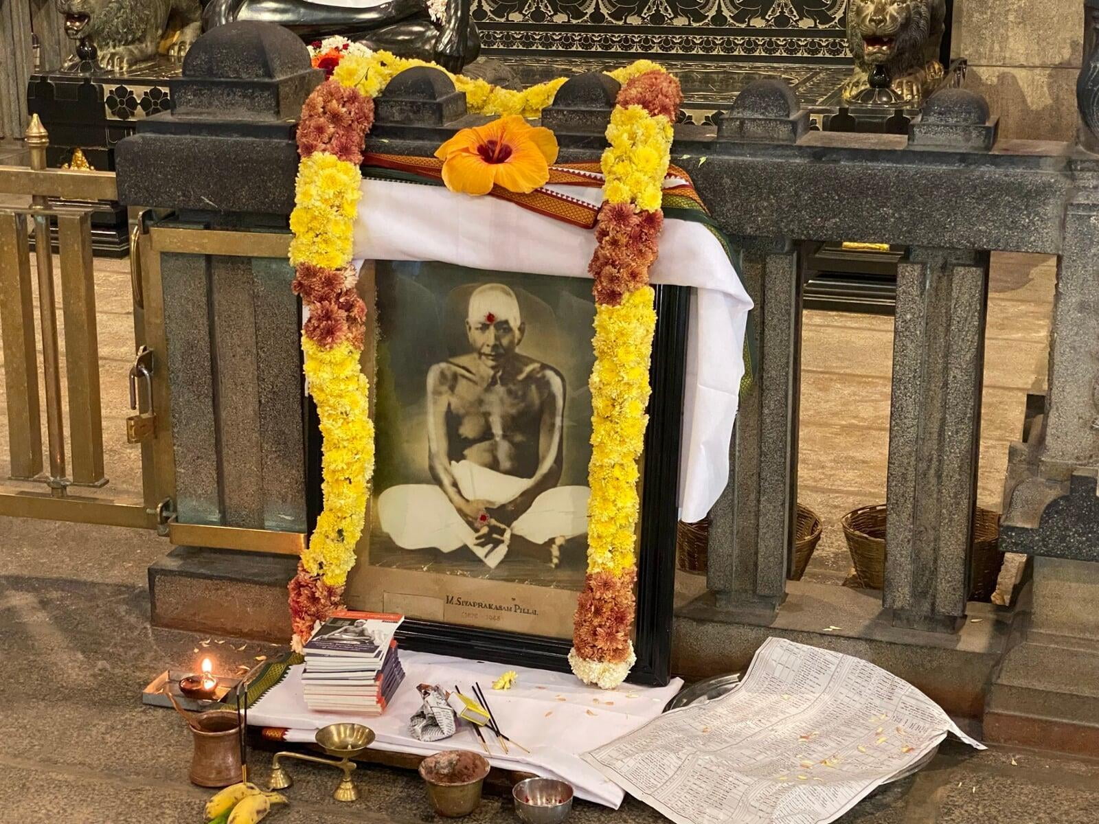 Sivaprakasam Pillai (1875-1948), a graduate in philosophy, an officer in the Revenue Dept. of the South Arcot Collectorate, first met Sri Ramana Maharshi in 1902. He is best remembered for his role in getting Sri Ramana Maharshi write down his teachings as Who am I? His aradhana was celebrated in the ashram today (12 Jan 2024) by chanting his compositions on Bhagavan.