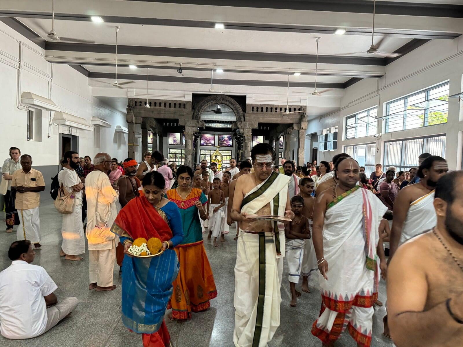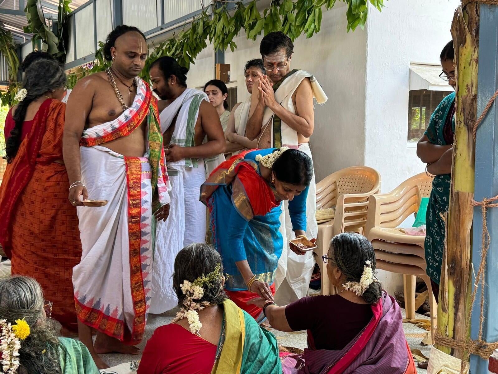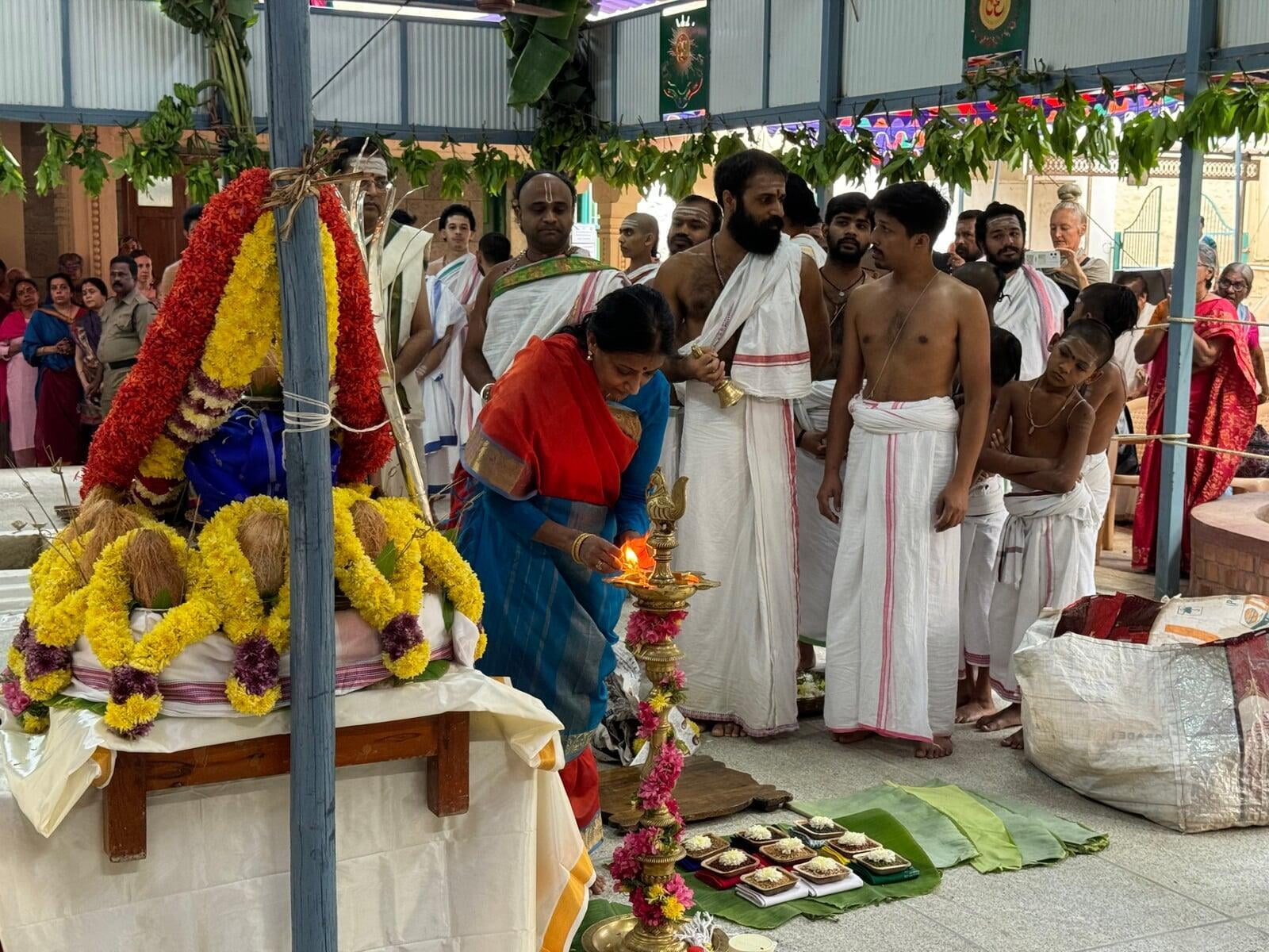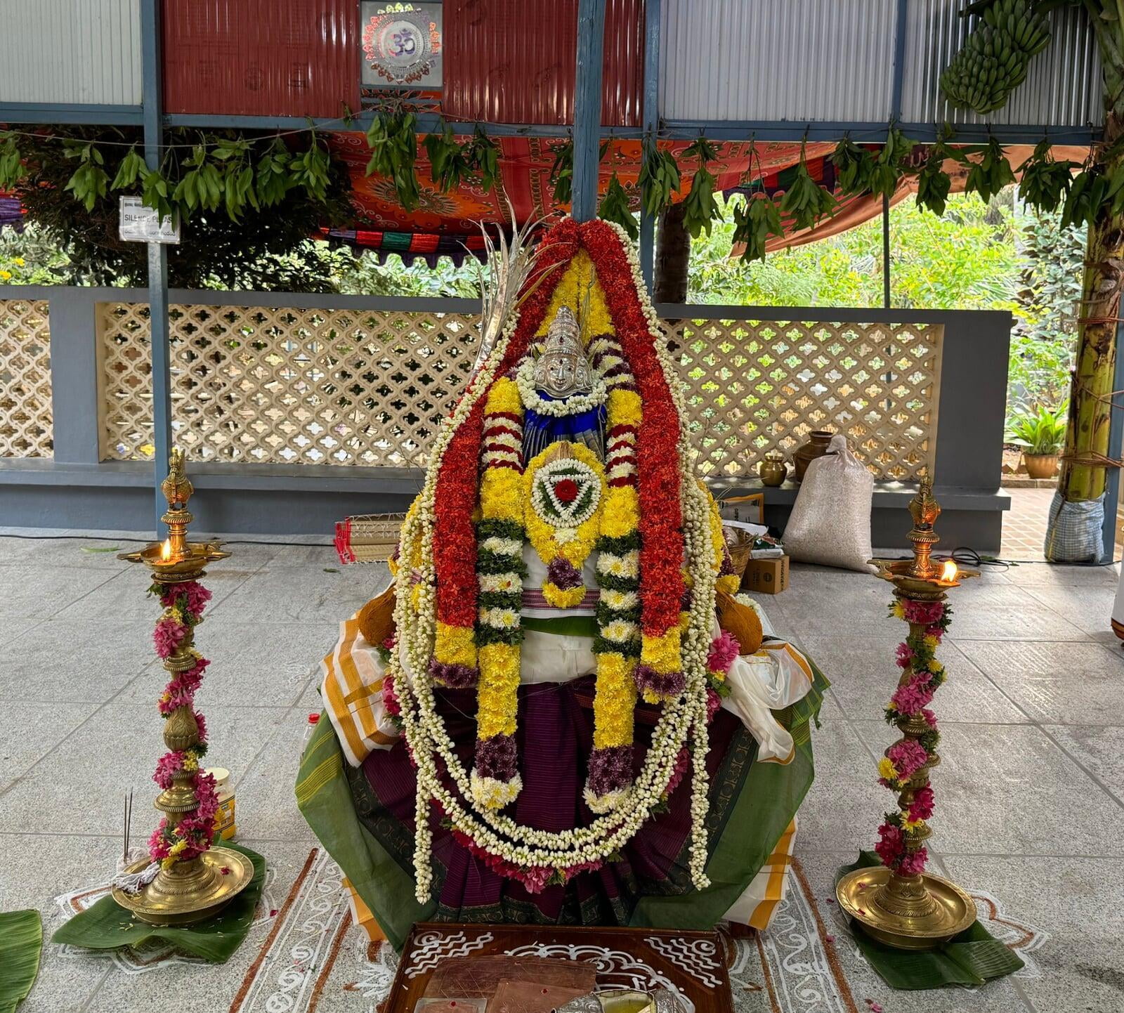 The annual Sri Vidya Homa took place at Sri Ramanasramam with grandeur on March 15, 2024. The event drew the participation of several thousand devotees. Commencing at 7 am, the day's rituals included the Navaavarna Puja, Homam, Sumangali Puja, Kanya Puja, Purnaahudi, and Deeparadhana. Following these ceremonies, the sacred tirthas were collected in urns and used for anointing the Sri Chakra Meru. The Deeparadhanas unfolded at the temples of Bhagavan (Ramaneswara) and his Mother (Mathrubhuteswara) around 3 pm.