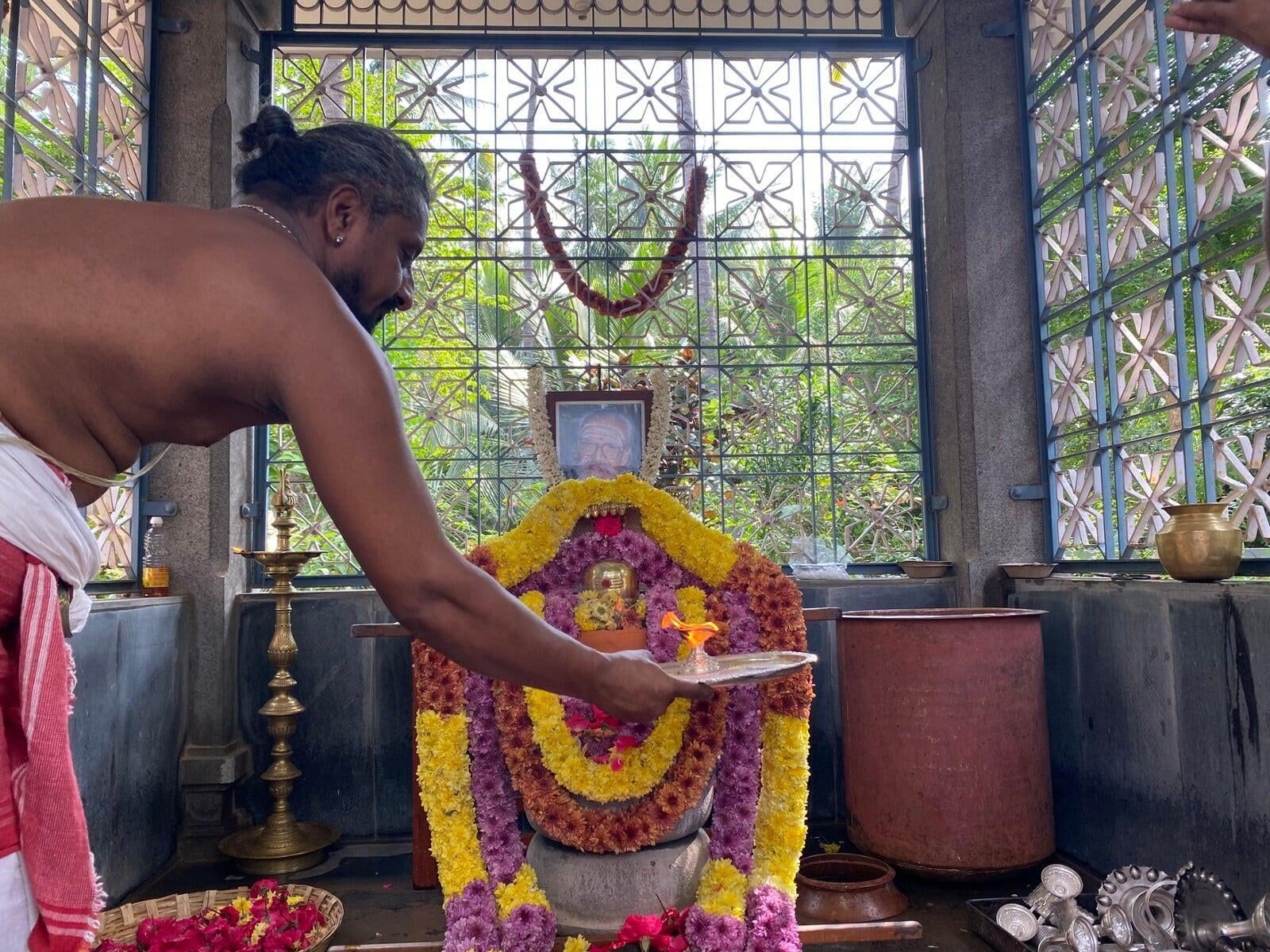 The aradhana of Swami Ramanananda was held in a grand fashion 29 December 2023 at his samadhi that lies opposite the Mother’s shrine.
